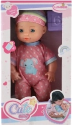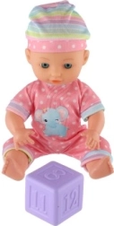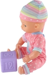 Preslatka beba s čvrstim plastičnim tjelešcem razveselit će svaku malu mamicu. Lutka veličine 25 cm odjevena je u ružičastu odjeću, a dio pakiranja je i kocka za igru. Idealna za razvoj mašte i igranje uloga, potiče finu motoriku i njegovateljske vještine djece.