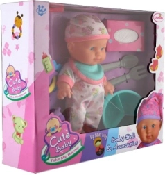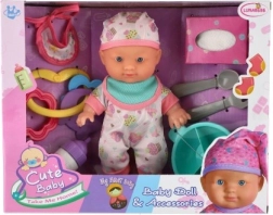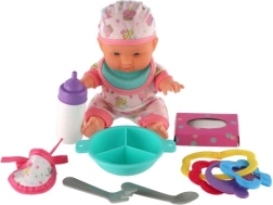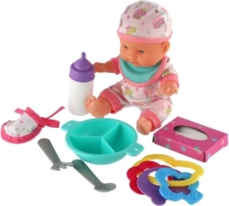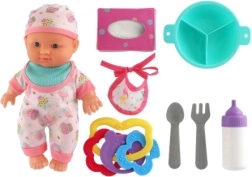 Slatka beba s čvrstim tjelom razveselit će svaku malu mamu. U pakiranju se nalaze praktični dodatci za hranjenje i njegu, zahvaljujući kojima se djeca mogu igrati prave brige o bebi. Idealno za razvoj mašte i fine motorike djece od 3 godine.