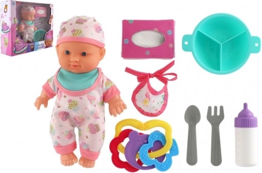 Dio pakiranja su bočica, zvečka, vlažne maramice i set za hranjenje za malu djecu, koji potiču realističnu igru i razvijaju motoričke vještine i socijalne uloge.