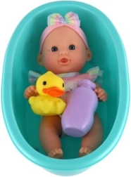Preslatka bebina lutka u kadici s pačićem razveselit će svakog malog ljubitelja kupanja. U kompletu su praktični dodaci za igru kupanja i njegu. Čvrsto plastično tijelo, kadica s pačićem i jednostavno održavanje čine ovaj set sjajnim poklonom za djecu od 3 godine.