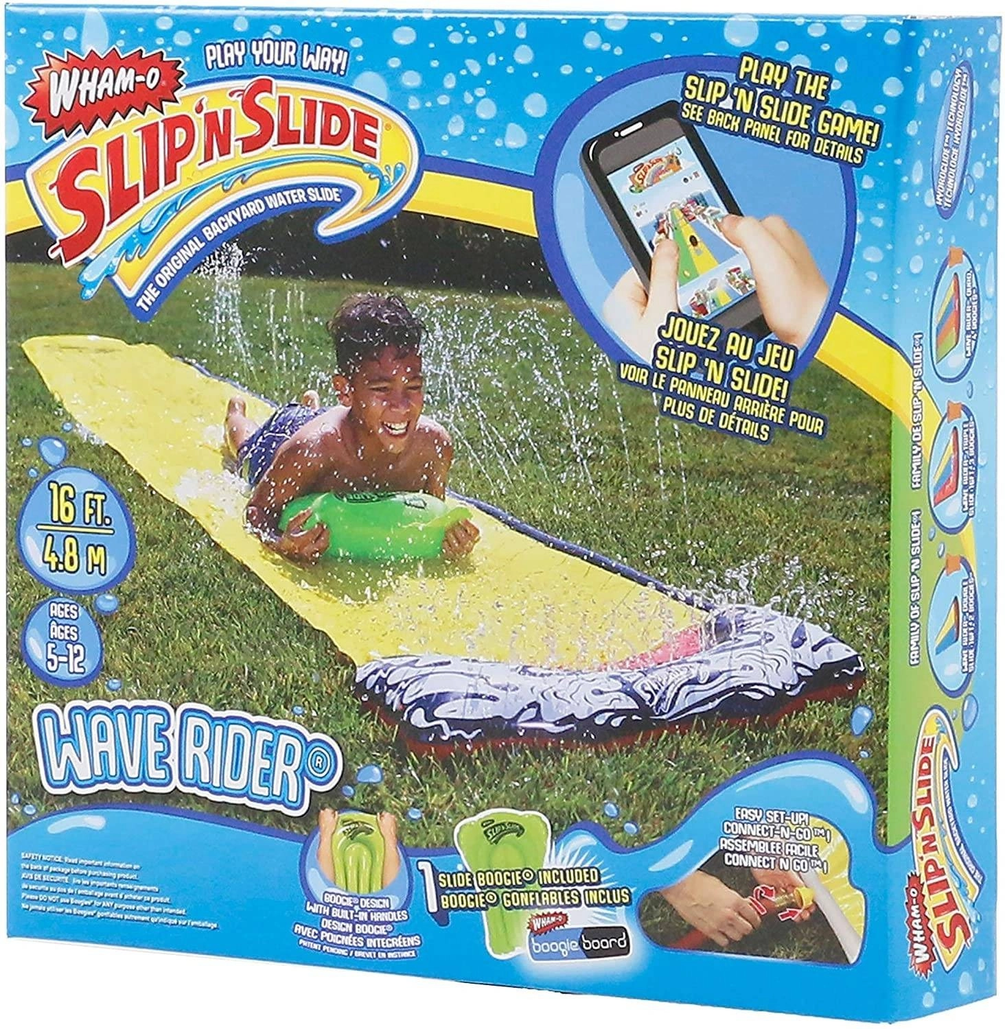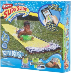 Doživite ljeto punim gasom s vodenim toboganom WHAM-O Slip N Slide Classic Wave Rider. Djeci od 5 godina donosi beskrajnu zabavu, brzu vožnju na stazi dugoj 4,9 m, jednostavno sastavljanje i izdržljivu izradu za sigurno kućno ludiranje u vrtu.