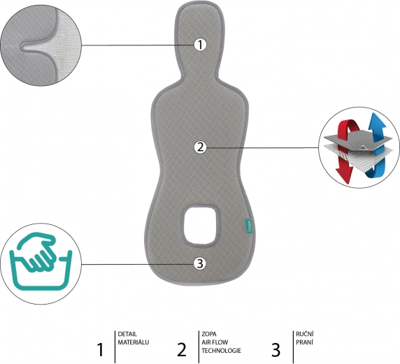 Jedinstvena tehnologija Zopa Air Flow i tkanina s 3D heksagon strukturom omogućuju protok zraka između autosjedalice i djeteta, čime se osigurava maksimalna udobnost.