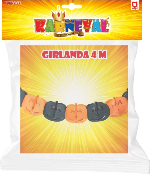 Dodajte svojoj Halloween dekoraciji šarm crno‑narančastom girlandom s motivom bundeva. Zahvaljujući papirnatom materijalu lagana je, lako se vješa i trenutačno stvara veselu atmosferu na proslavama i tematskim večerima.