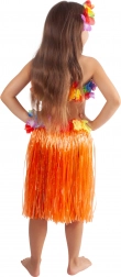 Razveselite karneval i havajsku zabavu ovom laganom dječjom havajskom suknjom duljine 45 cm u živopisnoj narančastoj boji. Ima udoban elastični pojas ukrašen šarenim cvjetovima i idealna je za hula ples, maškare i školske nastupe. Pakiranje sadrži samo suknju.