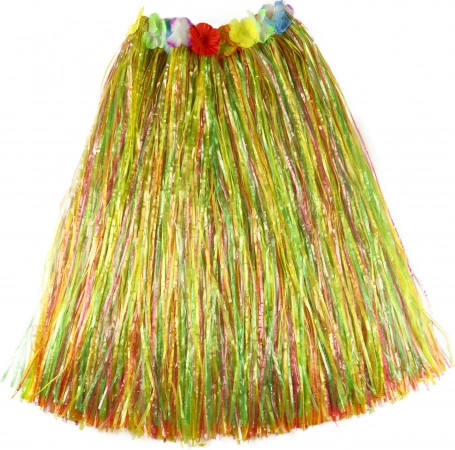 Sjajna suknja u „havajskom” stilu ne smije nedostajati ni jednoj dami u ormaru! Ovaj senzacionalni komad idealan je dodatak za karneval ili za tipični havajski ples „HULA”. Suknja, duga 72 cm, izrađena je od tankih plastičnih trakica u raznim bojama i ukrašena je šarenim laticama cvijeta. Super! Postani zvijezda karnevalske zabave zahvaljujući ovoj havajskoj suknji ili složi cijeli havajski kostim! Pakiranje sadrži samo suknju.