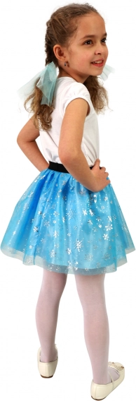 Ova očaravajuća dječja tutu suknja pretvara svaku djevojčicu u pravu zimsku princezu. Lagani i pufasti til u plavoj nijansi upotpunjuju sjajne pahuljice koje prekrasno reflektiraju svjetlo. Zahvaljujući elastičnom struku, suknja se lako oblači i udobna je za cjelodnevno nošenje.