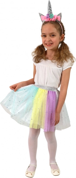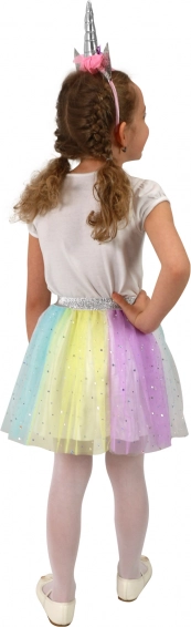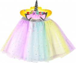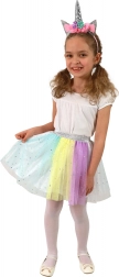 Ovaj očaravajući set donosi čaroliju jednoroga u dječji ormar. Laka i prozračna tutu suknja u pastelnim bojama prekrasno se vrti, a zahvaljujući elastičnom struku lako se oblači i ugodno nosi. Stil upotpunjuje trakica s rogom i cvjetnim ukrasom koja običan dan pretvara u bajkovitu pustolovinu.