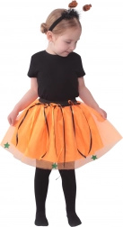 Priuštite maloj modnoj dami poseban izgled za svaku halloween proslavu. Ovaj kostim u tipičnim narančasto‑crnim bojama oduševit će pufastom tutu suknjicom i savršeno usklađenim obručem za kosu s preslatkim bundevama. Zahvaljujući elastičnom pojasu suknja se lako oblači i udobno nosi.
