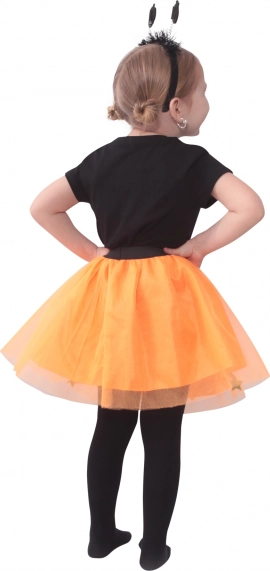 Pufasta narančasto‑crna suknja s dekorativnim detaljima daje kostimu izražajnost i razigranost, a pritom ostaje lagana i udobna.
