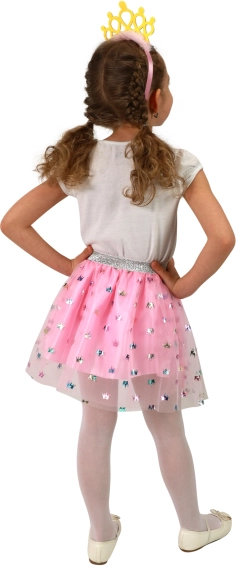 Ružičasta til suknja s nježnim otiscima krunica stvara očaravajući, princezinski dojam za svaku priliku.