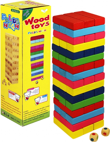 Šarena drvena kula je izvrstan izbor za zabavu i razvoj motoričkih vještina. Igra se temelji na postupnom vađenju šarenih kockica iz postojeće kule i njihovom slaganju na vrh.