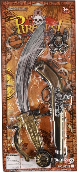 Otkrijte avanturu s našim piratskim setom koji sadrži sve što malom piratu treba, uključujući srebrni mač i brončani pištolj.