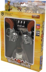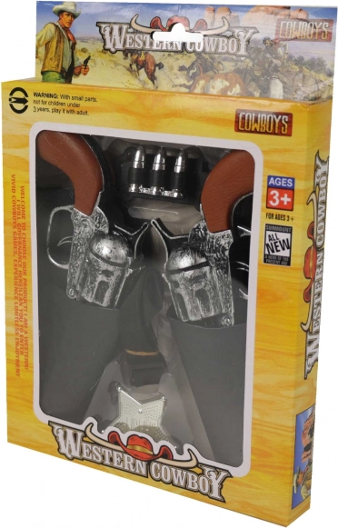 Set je pakiran u kartonsko-plastičnoj ambalaži s western grafikama, idealno kao dar za svakog malog revolveraša.