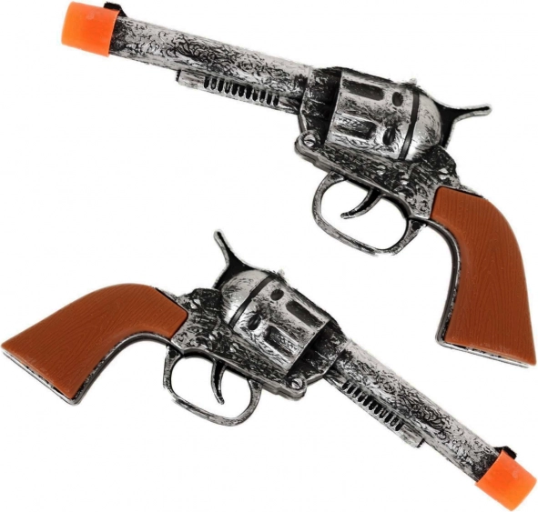 - Dva realistična pištolja: Zahvaljujući srebrnom izgledu i smeđim drškama izgledaju kao prave starozapadne puške.