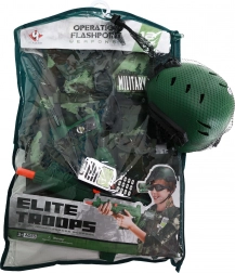 Set sadrži sve što vam je potrebno za vojnu igru - prsluk, kaciga, oružje i drugi dodaci.