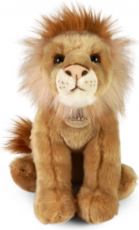 Meki pliš, pahuljasta griva i vezeni detalji daju lavu prirodan izgled i ugodan dodir – idealno za svakodnevno maženje.