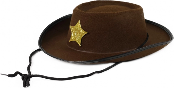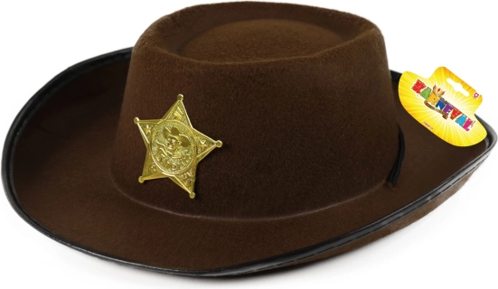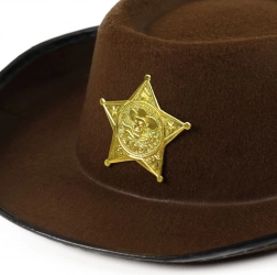 Stilizan smeđi kaubojski šešir za djecu unijet će u svaku igru na Divljem zapadu pravi štih. Zahvaljujući šerifskoj zvijezdi mali će kauboji steći poštovanje u gradu i uživati u obilju kreativne zabave. Pogodno za djecu od 3 godine.