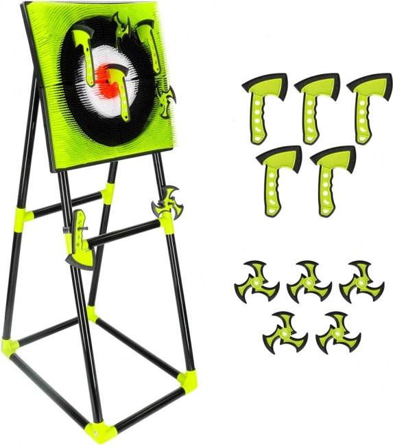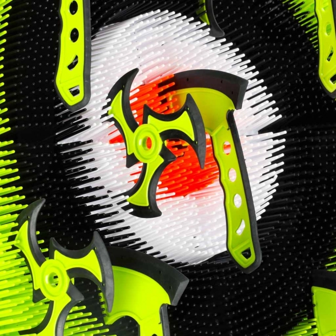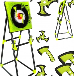 Otkrijte akcijsku zabavu s metom nadahnutu svijetom ninja – uz silikonske sjekire i šurikene djeca sigurno vježbaju ciljanje i koncentraciju. Čvrst samostojeći okvir sa stalkom omogućuje brzo sastavljanje i praktično odlaganje pribora.