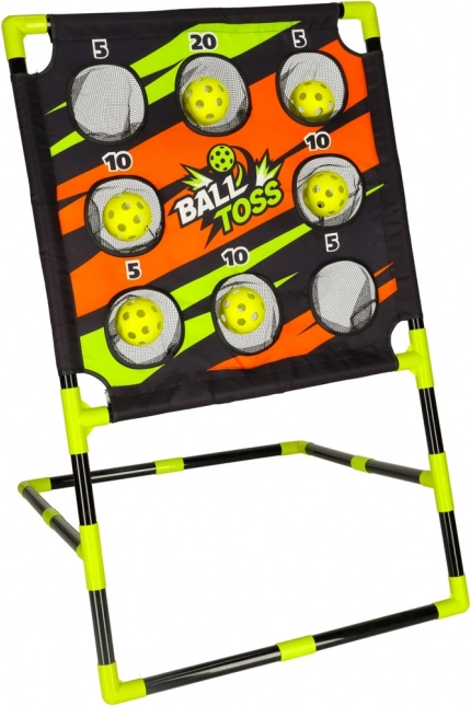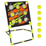 Jasno označen rezultat 5, 10 i 20 bodova potiče pošteno nadmetanje i motivira na postupno napredovanje. Šest perforiranih loptica promjera oko 7 cm sigurno je i dobro leži u ruci – idealno za uvježbavanje tehnike, brzine i snage bacanja.