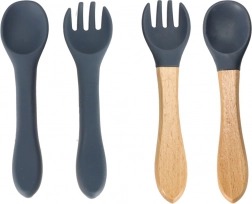 - podijeljeni tanjur, zdjelica, šalica s 2 poklopca + slamka, 2× vilica, 2× žličica, silikonski podbradnik