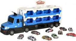 Kamion nudi duplu dozu zabave: kao auto transporter dovodi autiće na mjesto utrke, a jednim pokretom pretvara se u autodrom dužine 210 cm. Integrirani izbacivač šalje vozila na stazu munjevitom brzinom, dok svjetlosni i zvučni efekti daju utrkama realističnu atmosferu. Izdržljiva plastična izrada idealna je za svakodnevnu igru.