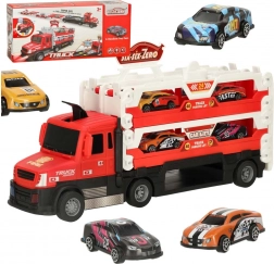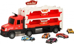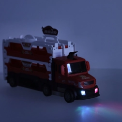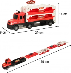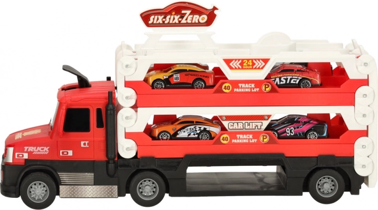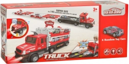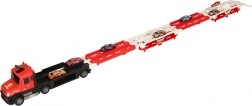 Ogromni crveni kamion služi kao transporter automobila i ujedno kao set za igru sa skrivenim trkaćim krugom. Nakon rasklapanja nastaje duga staza na kojoj se 6 priloženih autića može natjecati. Integrirana katapultirajuća rampa daje startu pravu brzinu, dok svjetla i zvukovi pojačavaju atmosferu stvarnih utrka.