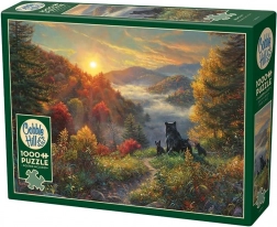 Prizor izlaska sunca u šumi s medvjedima i živopisnim jesenskim bojama pretvorit će dovršenu slagalicu u prekrasnu dekoraciju.