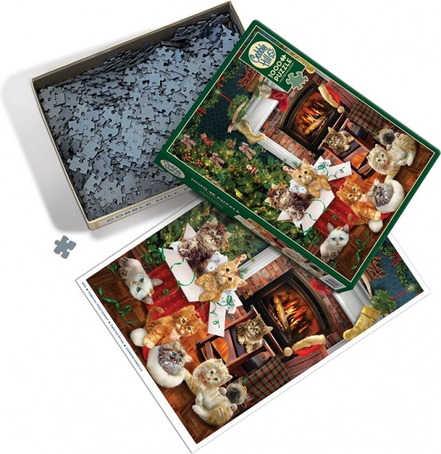 Uživajte u mirnim trenucima s prekrasnim motivom preslatkih mačića u božićnom ugođaju. Ova kvalitetna slagalica od 1000 dijelova nudi neuobičajene oblike dijelova i višu razinu težine zahvaljujući posebnoj matrici bez standardne mreže. Dio pakiranja je i predložak za lakše slaganje.