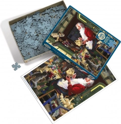 Doživite jedinstveno iskustvo s puzzlama 'Djedova radionica' od Cobble Hilla, koje donose ne samo zabavu, već i izazov zahvaljujući nesektorskoj matrici. Originalni motiv prikazuje starijeg muškarca koji slika model broda u radionici punoj igračaka te mačku koja sve promatra. Raznoliki i neobični oblici dijelova osiguravaju uzbudljivo slaganje puno otkrića.