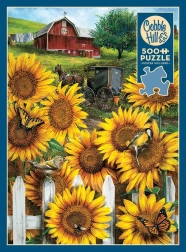 Puzzle Raj na selu od COBBLE HILL vodi vas na mirno selo puno suncokreta, ptica i leptira. Zahvaljujući atipičnim oblicima dijelova ovaj puzzle pomiče granice uobičajenih slagalica i pruža zanimljiv izazov i za iskusnije entuzijaste. U pakiranju ćete pronaći ne samo petsto pomno dizajniranih dijelova, već i predložak dimenzija 30,5 x 22,9 cm koji će vam pomoći pri sastavljanju.