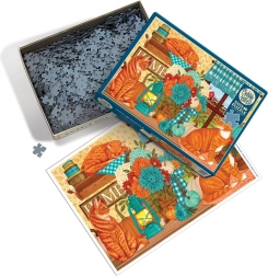 Doživite radost opuštanja uz slagalicu Mačke u Boji Bundeve od COBBLE HILL. Ova slagalica od 500 dijelova donosi jesensku atmosferu u vaš dom s očaravajućim prizorom triju mačaka okruženih cvijećem i bundevama.