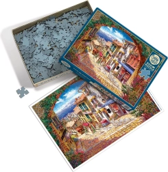 Uronite u slikovitu atmosferu povijesnog gradića Cagne i otkrijte čar svodenih prolaza u detaljnom i bogato obojenom motivu. Puzzle COBBLE HILL ističe se neobičnim oblikom dijelova koji ne prate standardnu mrežu. To povećava težinu i zabavu te donosi zadovoljavajući osjećaj dovršenog djela.