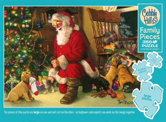 Obiteljske puzzle COBBLE HILL donose pametan koncept za udobno slaganje kroz generacije. Na jednom dijelu motiva pronaći ćete velike dijelove za mlađu djecu, u sredini srednje dijelove za opušteno slaganje, a na drugoj strani male dijelove za odrasle i iskusnije slagatelje. Božićni motiv Santine čarape unijet će u dom ugodnu blagdansku atmosferu.