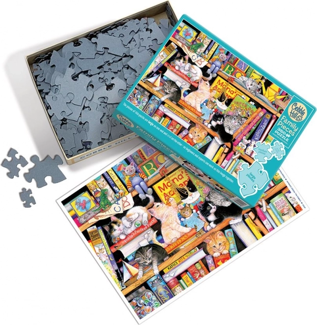 Originalna nepravilna razdjelna linija COBBLE HILL-a ne kopira klasičnu mrežu, pa je slaganje zabavnije i ponešto zahtjevnije. U pakiranju ćete također pronaći predložak dimenzija 31,6 × 22,9 cm, koji olakšava snalaženje u motivu „vrijeme mačjih priča” prepunom preslatkih mačaka.