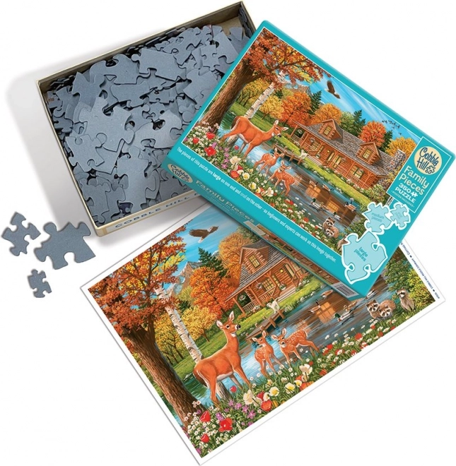 Obiteljska slagalica COBBLE HILL osmišljena je tako da u slaganju mogu uživati svi – od najmlađih do odraslih. Motiv idiličnog ribnjaka kraj vikendice donosi mirnu atmosferu i lijepe detalje koje ćete s veseljem otkrivati. Podjela slagalice na zone s različitim veličinama dijelova omogućuje udobno slaganje jedni pokraj drugih.