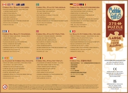 Izrez COBBLE HILL ne koristi uobičajenu mrežu – dijelovi imaju originalne, nepravilne oblike. To čini slaganje zanimljivijim te istovremeno vježba koncentraciju i finu motoriku. U pakiranju je i predložak veličine 31,6 × 22,9 cm, koji olakšava snalaženje u motivu.