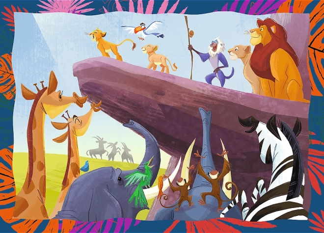 Otkrijte zabavu za djecu s puzzlama 4 u 1 inspiriranima bajkom Kralj lavova. Svaka kutija sadrži 4 zasebne slagalice s različitim brojem dijelova, pa će u njima uživati i mlađa i starija djeca. Najveća slika ima dimenzije 28,5 × 20,5 cm. Proizvedeno u Poljskoj od ekoloških materijala.