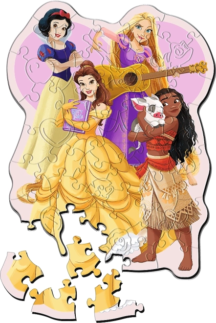Drvene puzzle DISNEY Princeze oduševit će svakoga tko traži lijepo i smisleno slaganje. Nepravilni oblici dijelova i skrivene figurice s princezama donose razigrani izazov koji će zabaviti i djecu i odrasle. Svaki dio je čvrst, postojanih boja i na stražnjoj strani dopunjen elegantnim uzorkom za još veći estetski doživljaj.