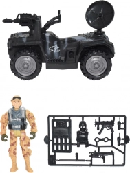 Vojno vozilo opremljeno je velikim kotačima, oružjem i satelitskom antenom, idealno za kreativne vojne scenarije.