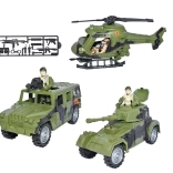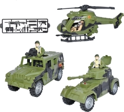 Ovaj set je odličan za djecu koja vole avanture. Sadrži vojni helikopter i figuru vojnika, pažljivo dizajnirane s naglaskom na sigurnost djece. Helikopter je opremljen slobodno pokretnim kotačima, što olakšava igru i manipulaciju. Zahvaljujući detaljnoj izradi ovih igračaka, djeca se mogu uroniti u svijet vojnih taktika i misija.