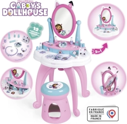 Toaletna set 2 u 1 Mačja kućica Gabi nudi djeci sate zabave kroz igru uljepšavanja. Sadrži ogledalo, stolić i 12 stilskih dodataka inspiriranih pričom Gabbyjeve kućice za lutke.