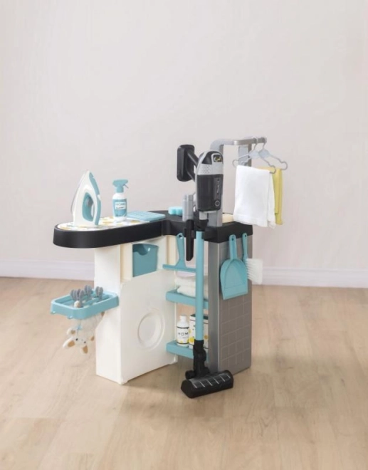 Kompletno pakiranje pruža sve potrebno za maštovitu igru i razvoj vještina u području pospremanja i brige o kućanstvu. Uključeni su autentični dodaci poput košare za rublje, vješalica, kao i stvarni zvuk usisavača za još bolji doživljaj igre.