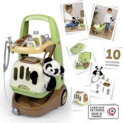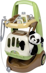 Smoby veterinarska kolica s pandom donose djeci od 3 godine autentičnu igru veterinara. Zahvaljujući pametnom rješenju 2-u-1 praktični boks služi kao transportni boks za životinje i kao samostalni pokretni liječnički kovčežić. Kolica imaju kotače laganog hoda, pa ih lako voze i manja djeca, a pritom nude dovoljno prostora za pohranu cjelokupne opreme.