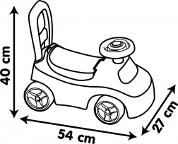 Udobno sjedalo skriva spremište za sitnice, dok mehanički klakson potiče interaktivnu igru i razumijevanje uzroka i posljedice. Guralica je namijenjena djeci od 10 mjeseci, ima visinu sjedala 20 cm i nosivost do 50 kg, pa će dijete pratiti dugo i sigurno.