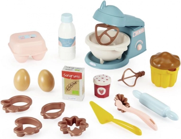 Kompletan slastičarski set za djecu nudi sve što mali pekari trebaju za kreativnu igru. Sadrži mikser s 2 nastavka, kalup i modlice za pečenje, valjak, rezaćka, jaje i druge makete namirnica. Ukupno 19 dijelova za realističnu i zabavnu igru.