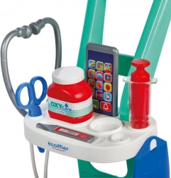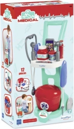 Set sadrži kofer i realistične dodatke, kao što su stetoskop, šprica, toplomjer, škare i drugi elementi za pregled pacijenta. Lagana konstrukcija mase samo 1,085 kg jamči jednostavno premještanje po stanu i dječjoj sobi.