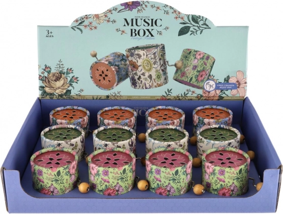 Kutijica je dostupna u nekoliko varijanti boja s dekorativnim cvjetnim uzorkom. Ručni mehanički pogon ne zahtijeva baterije, pa je uvijek spremna za upotrebu. Preporučeno za djecu od 3 godine.