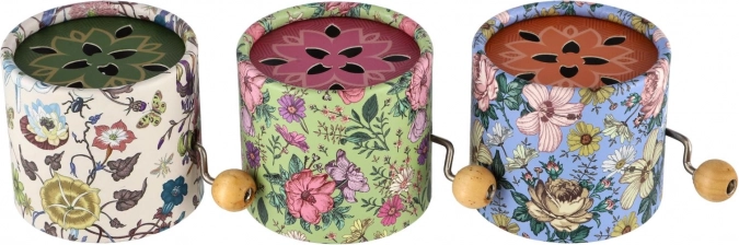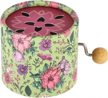 Ova ručna glazbena kutijica u metalnoj kutijici s papirnatim tiskom i cvjetnim poklopcem reproducira melodiju jednostavnim okretanjem ručke. Zahvaljujući kompaktnim dimenzijama 9 × 6 × 9 cm odlično leži u ruci i lako stane u torbu ili na policu. Idealna je za trenutke mira, razvoj osjetila i kao dražestan dodatak dječjoj sobici.