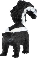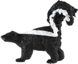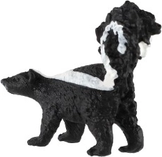 Ova precizno izrađena figurica prugastog skunka vjerno prikazuje karakteristične značajke ovog sjevernoameričkog sisavca – kontrastne pruge i izražen rep. Prikladna je kao edukativno pomagalo, dekoracija dječje sobe i kao kolekcionarski model.