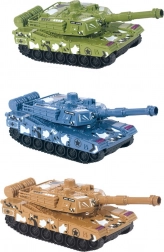 Kompaktni tenk na zamašnjak duljine 15 cm razveselit će male ljubitelje vojne tehnike. Nudi jednostavno upravljanje, tri kolor varijante i izdržljivu izradu bez potrebe za baterijama. Jednostavna vožnja na zamašnjak, praktična veličina 15 cm, bez baterija i bez efekata.